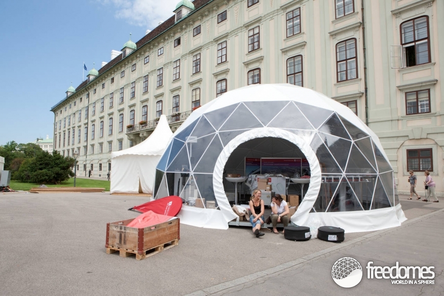 Freedomes, especially for the Green Expo, provided our own eco geodesic domes: one Freedome 110 event dome, one Freedome 75 event dome and one Freedome 30 event dome, which fit the ecological landscape of Vienna perfectly.